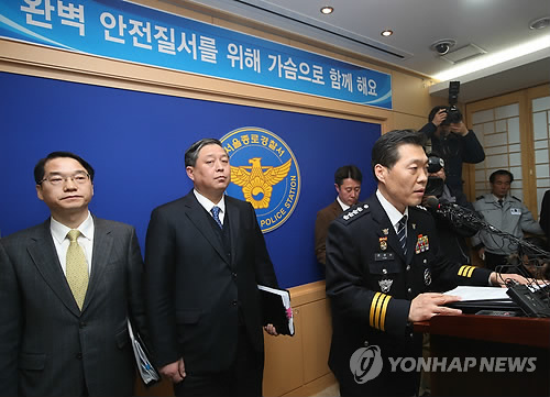 | △ 리퍼트 대사 피습사건 수사 브리핑 (서울=연합뉴스) 김도훈 기자 = 윤명성 종로경찰서장이 6일 오전 서울 종로서 브리핑실에서 마크 리퍼트 주한 미대사의 피습사건 관련 수사 브리핑을 하고 있다. |