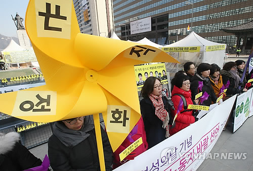 | △ '2015 여성노동자 바람 선언' 발표 기자회견 (서울=연합뉴스) 임헌정 기자 = 3.8 세계여성의 날을 앞둔 6일 서울 종로구 광화문 광장에서 열린 '2015 여성노동자 바람 선언' 발표 기자회견에서 한국여성노동자회와 전국여성노동조합 관계자들이 바람개비를 들고 있다. 이들은 이날 기자회견에서 여성 노동자의 정규직화, 임금인상 등 '바람'을 담은 선언을 발표했다. |