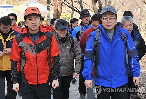 | △ (부산=연합뉴스) 서병수 부산시장(오른쪽)과 김기현 울산시장이 두 도시의 상생협력 방안을 마련하려고 7일 울산시 울주군 온양읍 대운산을 함께 오르고 있다. 2015.3.7 << 부산시 제공 >> ccho@yna.co.kr |
