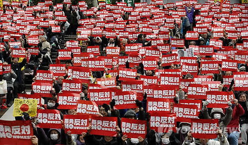 시위 참가자들은 히비야(日比谷) 공원을 출발해 정부 부처들이 있는 가스미가세키(霞が關) 주변을 행진했다.