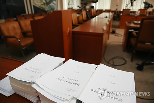 | △ 9일부터 인사청문회 퍼레이드 (서울=연합뉴스) 진성철 기자 = 국회는 9일부터 20일 동안 최대 8개의 인사청문회를 개최할 예정이어서 여야간 전운이 감돌고 있다. 유기준 해양수산(9일) 유일호 국토해양(9일) 임종룡 금융위원장(10일) 홍용표 통일(11일) 장관 후보자 등 장관급만 4명에, 조용구 중앙선관위원(11일) 후보자와 이병호 국가정보원장(16일) 후보자의 청문회도 예정돼 있다. 휴일인 8일 국회 국토교통위원회에 유일호 국토교통부 장관 후보자에 대한 인사청문회 준비가 진행되고 있다. 2015.3.8 zjin@yna.co.kr |