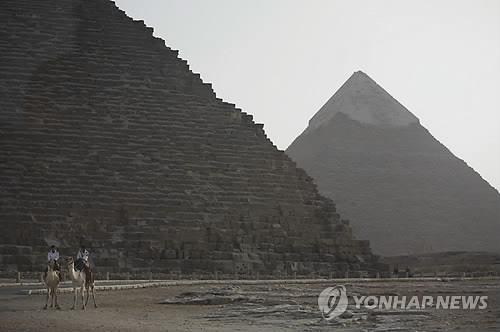 | △ 이집트 카이로 인근 가자 피라미드에서 보안요원들이 낙타를 타고 순찰하는 모습 (AP=연합뉴스) |