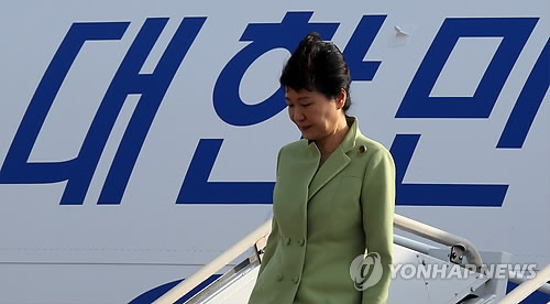 | △ 귀국하는 박 대통령 (성남=연합뉴스) 도광환 기자 = 중동 4개국 방문을 마친 박근혜 대통령이 9일 오전 서울공항에 도착, 전용기에서 내리고 있다. |