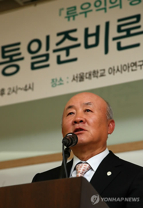 류 전 장관은 9일 서울대 관악캠퍼스 아시아연구소에서 열린 '통일준비로: 한국 지성에 고함' 강연에서 "우리나라는 그동안 산업화, 민주화, 선진화에 진력하면서 통일을 미뤄왔다"며 "이제는 미룰 명분도 없고 능력도 갖춘 만큼 통일은 선택이 아니라 필수"라고 말했다.