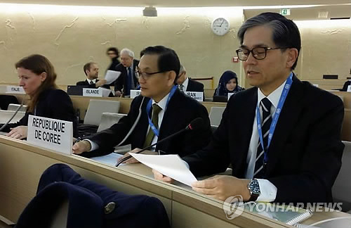 (서울=연합뉴스) 강병철 기자 = 최석영 주제네바대표부 대사가 8일(현지시간) 스위스 제네바에서 개최되고 있는 제28차 유엔 인권이사회에서 중견국 협의체인 '믹타(MIKTA)'를 대표해 발언했다고 외교부가 9일 밝혔다.