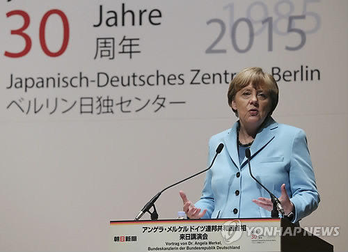 메르켈 총리는 도쿄 도내 아사히신문 본사에서 이 신문사와 사단법인 '베를린 일·독센터'가 공동주최한 강연 후 질의응답 시간에 '전후 70년을 맞은 일본이 역사 문제를 둘러싼 중국 및 한국과의 갈등을 어떻게 극복해야 하느냐'는 질문을 받자 2차대전 전범국 독일이 주변국과 화해할 수 있었던 배경을 소개하며 이같이 말했다.