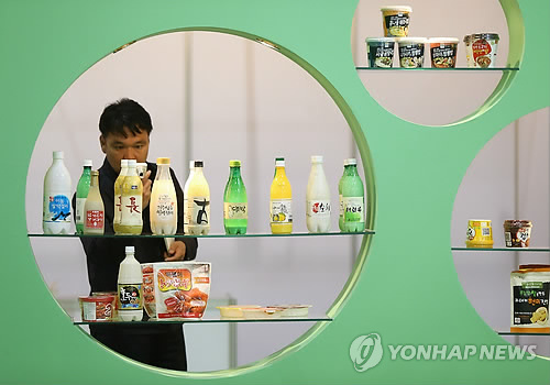 | △ 우리나라 전통주 중 약주는 미국시장에 가장 많이 수출 되는 것으로 나타났다. 사진은 '2013 쌀 가공식품산업대전'에서 한 관람객이 막걸리 사진을 찍고 있다. (연합뉴스 자료사진) |