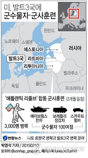 한편 미 국방부는 발트 3국에서 미군 3천명 병력을 동원하는 3개월 일정의 '애틀랜틱 리졸브' 합동 군사훈련이 시작됐다고 밝혔다.