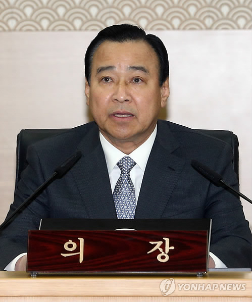 | △ 이완구 총리, 세종청사에서 국무회의 주재 (세종=연합뉴스) 배재만 기자 = 이완구 국무총리가 10일 오전 정부세종청사 영상국무회의장에서 세종-서울 청사 간 영상 국무회의를 주재하고 있다. |