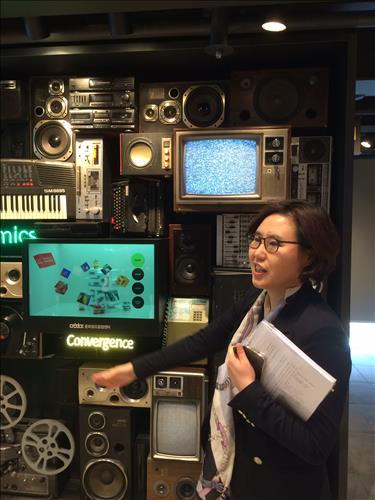 | △ 강명신 문화창조융합센터장이 10일 상암동 문화창조융합센터에서 열린 기자설명회에서 센터의 시설에 대해 설명하고 있다. |
