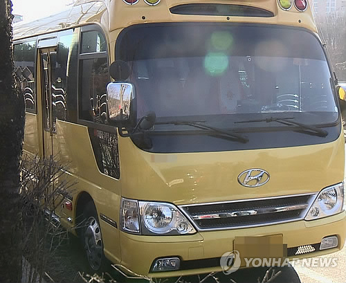 | △ 통학버스 사고로 4세 어린이 숨져 (경기광주=연합뉴스) 10일 경기도 광주의 한 어린이집에서 4살 어린이가 자신이 타고 온 통학버스에 치여 숨지는 사고가 발생했다. 사진은 사고 통학버스. (연합뉴스TV) |