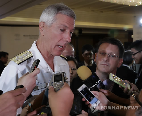 | △ (AP=연합뉴스) 새뮤얼 라클리어 미 해군 태평양사령관이 2014년 5월 필리핀 마닐라 근교 마카티 시티에서 기자들의 질문에 답하고 있다. |