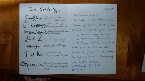 워싱턴 한인단체들, 리퍼트 대사에 쾌유 카드