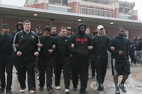 오클라호마 대학 미식축구 선수들은 9일 오전 훈련을 포기하고 학내 집회에 참석해 일부 백인 학생들의 인종 차별 발언을 강하게 성토했다.