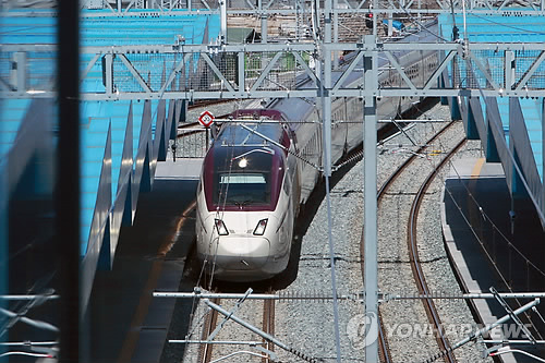 | △ 모습 드러낸 호남고속철 (광주·오송=연합뉴스) 장아름 기자 = 오는 4월 호남고속철도 정식개통을 앞두고 광주시가 지난 10일 광주송정역부터 오송역까지 신설된 고속철로에 대한 시승 행사를 개최했다. 신형 KTX가 광주송정역을 향해 들어오는 모습. |