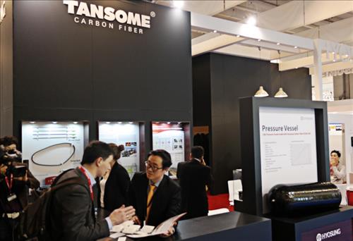 효성은 이번 전시회에서 자체 개발한 탄소섬유인 탄섬(TANSOME®)을 선보이는 동시에 탄소 강소기업의 마케팅 활동을 지원했다.