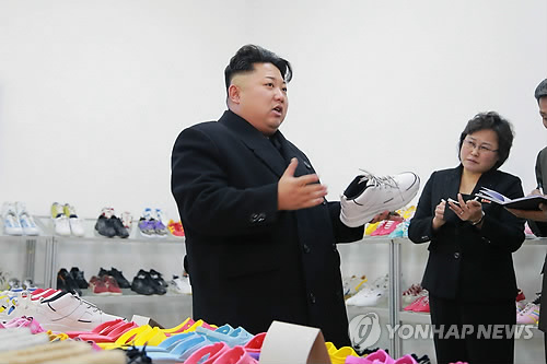 | △ 김정은 북한 국방위원회 제1위원장이 류원신발공장을 시찰하고 질 제고를 주문했다고 조선중앙통신이 지난 1월 22일 보도한 사진.<<연합뉴스DB>> |