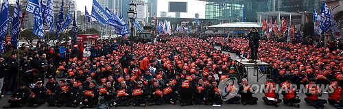 '양대노총 제조부문 공동투쟁본부'는 11일 오후 서울역광장에서 출범식을 열고 "가계부채가 이미 1천조원을 넘어서 노동자와 서민의 생계가 심각하게 위협받는 상황인데도 정부가 담뱃값과 연말정산 폭탄, 과태료 증세 등의 '꼼수 증세'로 노동자와 서민의 주머니를 털고 있다"고 주장했다.