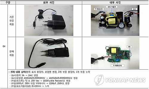 특히 전류가 과도하게 흐르는 것을 막는 역할을 하는 '옵토커플러', '캐패시티' 등 중요 부품이 없기도 해 감전·화재 우려가 컸다.