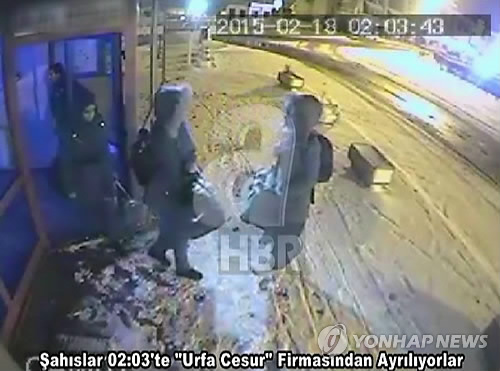 | △ 지난 1일(현지시간) 이슬람 극단주의 무장세력 '이슬람국가'(IS)에 합류한 영국 10대 소녀 3명이 시리아 입국 전 터키 이스탄불에서 버스를 기다리는 모습이 담긴 폐쇄회로TV(CCTV) 화면이 공개됐다. (AP=연합뉴스) |
