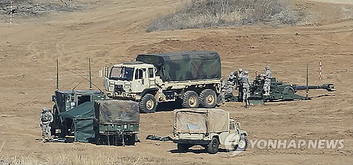 | △ 종료 앞둔 키 리졸브 연습 (파주=연합뉴스) 임병식 기자 = 한미연합훈련인 '키 리졸브(KR) 연습' 종료를 하루 앞둔 12일 경기도 파주시 접경지역에서 주한미군들이 견인포를 정비하고 있다. |