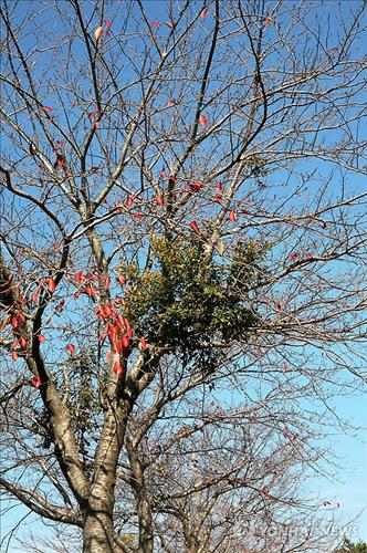 ▲벚나무에 기생한 참나무겨우살이