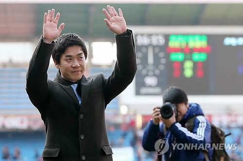 | △ 밝은 표정의 윤정환 감독 (포항=연합뉴스) 김준범 기자 = 15일 경북 포항스틸야드에서 열린 K리그 클래식 울산현대축구단 대 포항스틸러의 경기. 포항을 4-2로 누른 울산 윤정환 감독이 팬들에게 인사하고 있다. 2015.3.15 psykims@yna.co.kr |