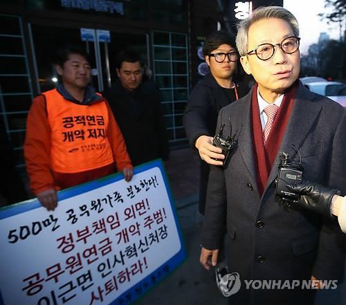 이 처장은 공무원연금 개혁안에 대한 취재진 질문에 "현재 대타협 기구를 통해 공무원 단체와 논의하고 있다"며 "여당, 야당, 공무원들이 개혁안에 대해 가지고 있는 생각이 조금씩 다르지만 적당한 합의점을 도출해 낼 것"이라고 말했다.