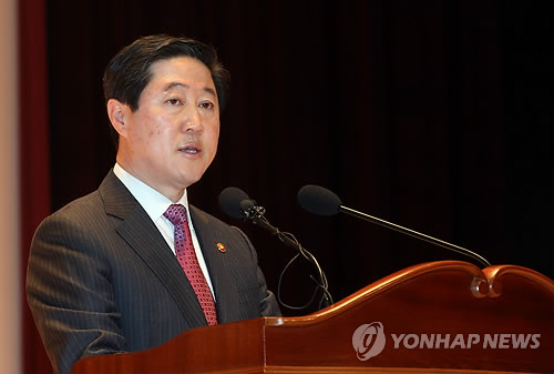 | △ 취임사하는 유기준 해양수산부 장관 (세종=연합뉴스) 배재만 기자 = 유기준 해양수산부 장관이 16일 오전 정부세종청사 대강당에서 열린 취임식에서 취임사를 하고 있다. |