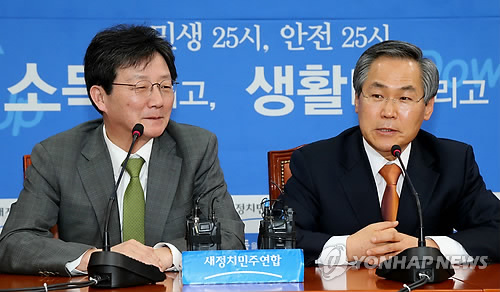 | △ 우윤근 원내대표 모두발언 (서울=연합뉴스) 백승렬 기자 = 새정치민주연합 우윤근 원내대표가 16일 국회 새정치민주연합 원내대표실에서 열린 여야 원내대표 주례회동에서 모두발언하고 있다. 왼쪽은 새누리당 유승민 원내대표. |