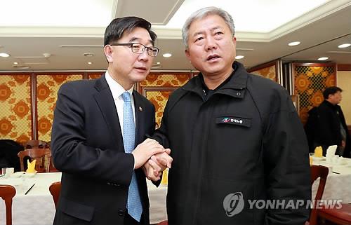<이기권 고용노동부 장관과 김동만 한국노총 위원장>