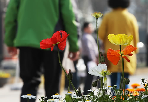 | △ 화사해진 옷차림 (서울=연합뉴스) 박동주 기자 = 포근한 봄 날씨가 이어진 16일 오후 가벼운 옷차림을 한 시민들이 시청 앞 서울광장을 지나고 있다. |
