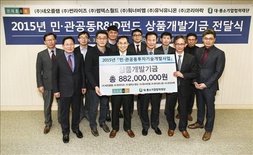 이 기금은 동반성장위원회와의 협약을 통해 민관 공동투자 연구·개발(R&D) 사업 차원에서 현대홈쇼핑과 대중소기업협력재단이 각각 4억4천100만원씩 모은 것이다.