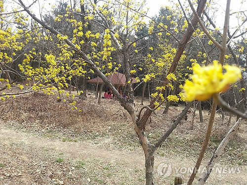 | △ 활짝 핀 산수유꽃 (대구=연합뉴스) 손대성 기자 = 17일 대구시 북구 연암공원에 봄을 알리는 산수유꽃이 활짝 피었다. 2015.3.17 sds123@yna.co.kr |