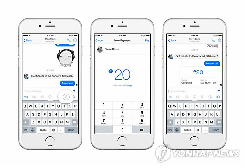 (샌프란시스코=연합뉴스) 임화섭 특파원 = 세계 최대 소셜 미디어인 페이스북이 메신저 서비스에 페이스북 친구들끼리 돈을 부치고 받을 수 있는 송금 기능을 도입키로 해 모바일 결제 시장에 파란이 예상된다.