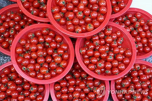 대추형 방울 토마토 3㎏ 상자는 1만6천122원으로 33% 떨어졌으며, 원형 방울 토마토 5㎏ 상자가 1만7천581원으로 35% 내려갔다.