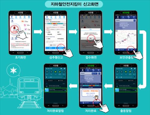 그러나 지하철 안전지킴이 앱은 열차 운행정보와 전동차에 설치된 와이파이 통신망을 이용, 신고 즉시 신고가 접수된 열차와 가장 가까운 곳의 지하철보안관과 경찰에게 통보된다.