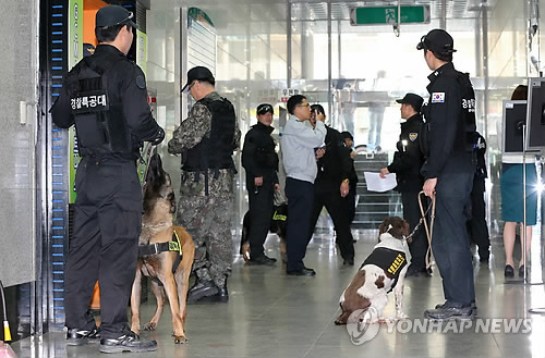 신고를 받고 출동한 공항 특공대와 경찰이 현재 김해공항 주변에 폭발물 수색작업을 벌이고 있다.