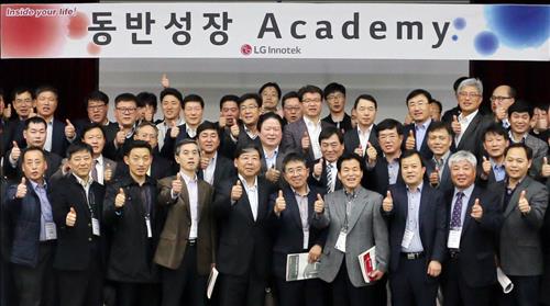 | △ LG이노텍이 19일 경기도 안산시 R&D캠퍼스에서 협력사 임직원 100여명을 초청해 R&D, 경영, 혁신, 환경안전 등 분야별 최신 동향과 대응 노하우를 공유하는 ‘동반성장 아카데미’를 개최했다. |