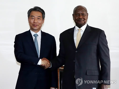 정 장관은 "두 나라의 협력관계가 깊어져 공동발전을 이루는 성과를 내도록 무세베니 대통령이 관심을 가져 주시라"고 부탁했다.