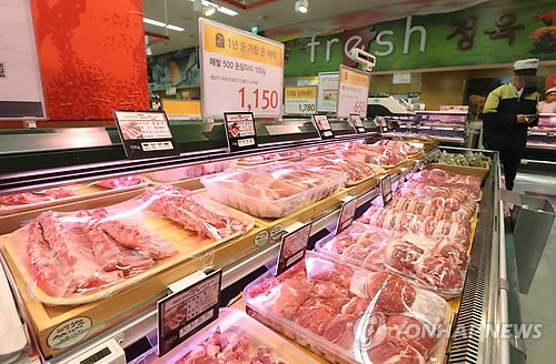 | △ 돼지뒷다리살 인기가 급상승하고 있다. 사진은 서울의 한 대형마트 축산물 코너.(연합뉴스 자료사진) |