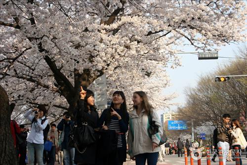 ◇ 여의도 윤중로(개화 4월 9일) = 매년 따뜻한 봄기운이 살포시 느껴질 때면 여의도에서는 제주도가 원산지인 왕벚나무 1천641주를 비롯, 진달래·개나리·철쭉·조팝나무·말발도리 등 13종 8만7천859주의 봄꽃이 만개해 넓게 트인 한강을 배경으로 봄의 항연이 펼쳐진다.