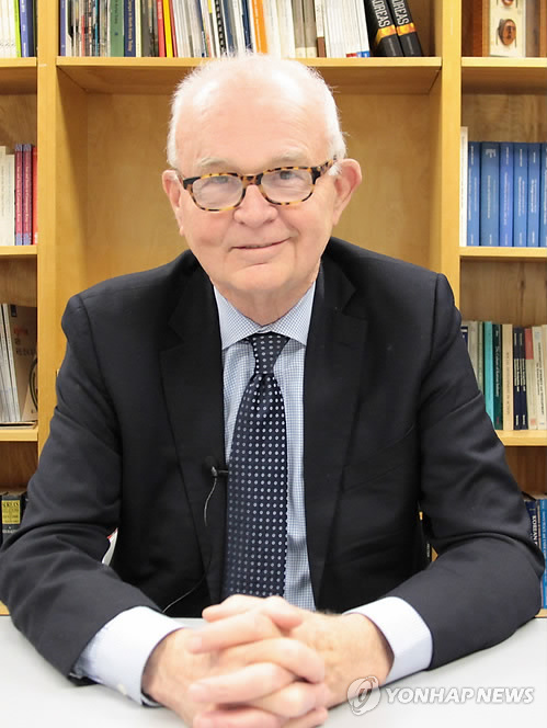 | △ 주한 미국대사를 지낸 스티븐 보즈워스 미국 존스홉킨스대 국제관계대학원(SAIS) 한미연구소 소장이 21일(현지시간) 연합뉴스·연합뉴스TV와의 인터뷰에서 일본의 과거사 왜곡 및 위안부 부정 논란에 대해 입장을 밝히고 있다. 2015.03.22 |