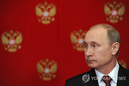 | △ (epa=연합뉴스) 블라디미르 푸틴 러시아 대통령이 지난 5일 모스크바 크렘린궁에서 기자회견을 하는 모습. |