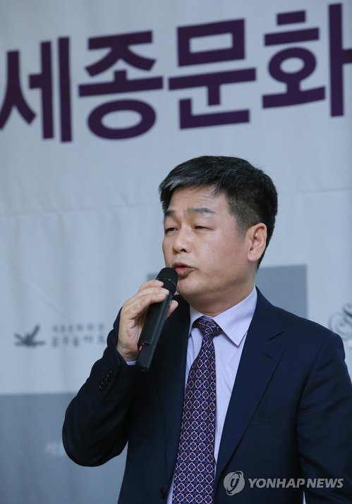| △ 신임 세종문화회관 이승엽 사장 간담회 (서울=연합뉴스) 홍해인 기자 = 이승엽 신임 세종문화회관 사장이 24일 오후 서울 세종문화회관 예술동 예인홀에서 열린 기자간담회에서 향후 회관의 비전과 정책을 발표하고 있다. 2015.3.24 hihong@yna.co.kr |