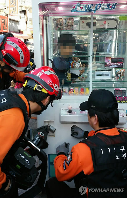 인형뽑기 기계 안에 들어간 어린이 무사히 구조