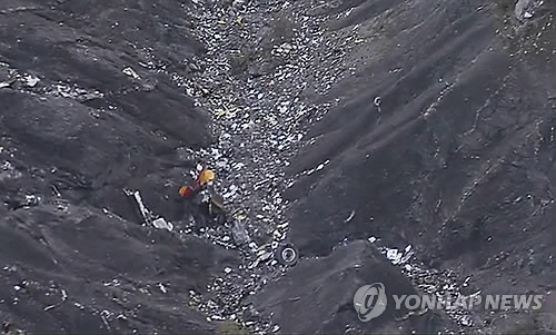 | △ 독일 여객기 알프스서 추락 (AP/TF1방송=연합뉴스) 24일 오전(현지시간) 독일 저가항공사 저먼윙스 여객기가 추락한 프랑스 남부 세인 레 잘프스 부근 해발 1천500m 높이의 알프스 산악에 비행기 잔해가 흩어져 있는 모습. 스페인 바르셀로나공항에서 출발해 독일 뒤셀도르프로 향하던 이 비행기에는 승객 144명, 승무원 6명 등 모두 150명이 탑승하고 있었으며 전원 사망한 것으로 보도됐다. 저먼윙스는 루프트한자 계열 저가 항공사. |