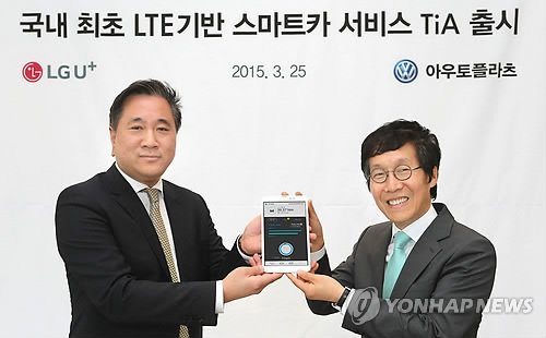 (서울=연합뉴스) 전성훈 기자 = LG유플러스[032640] 폴크스바겐 공식 딜러인 신아주그룹 계열 아우토플라츠와 함께 LTE 기반의 스마트카 서비스 '티아'(TiA)를 출시한다고 25일 밝혔다.