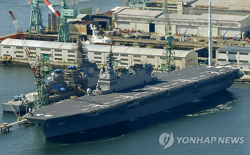 (도쿄=연합뉴스) 이세원 특파원 = 일본 해상자위대의 최대 규모인 호위함인 '이즈모'가 25일 취역(就役)했다.