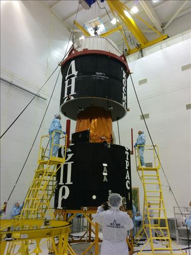 | △ 러시아 야스니 발사장에서 다목적실용위성 3A호(아리랑 3A호)를 드네프르 발사체에 싣는 모습. 한국항공우주연구원 제공. |